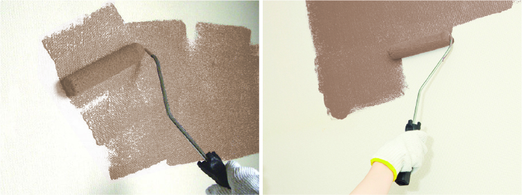 壁紙の継ぎ目にハガレがある場合にそのまま塗ると、塗料が乾くと引っぱられ、より目立ちますので、壁紙補修材や木工用ボンドをはがれた面に付けた後、接着用ローラーやヘラで押しつけ、補修します。